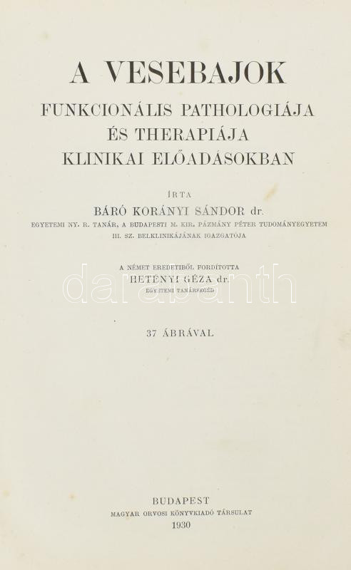 Korányi Sándor: A vesebajok funkcionális pathologiája és therapiája kl... https://www.darabanth.com/en/457-Online-auction/457.0/Books/Books-Natural-sciences-Medicine~1500026/Koranyi-Sandor-A-vesebajok-funkcionalis-pathologiaja-es-therapiaja-klinikai-eloadasokban-F~II3019600