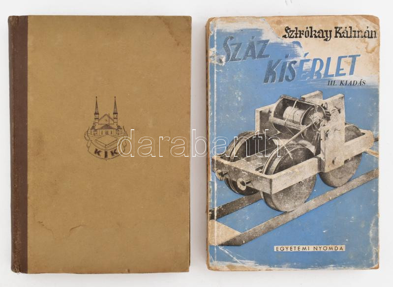 Description: Sztrókay Kálmán 2 műve: Száz kísérlet.; Még száz kísérlet. Say Kornél közreműködésével és rajzaival. Bp., é.n., (Kir. M.) Egyetemi Nyomda. Szövegközi illusztrációkkal. Kiadói papírkötés/félvászon-kötés, foltokkal, az egyik kötet sérült borítóval.