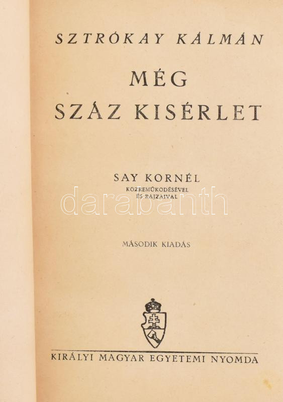 Sztrókay Kálmán 2 műve: Száz kísérlet.; Még száz kísérlet. Say Kornél ... https://www.darabanth.com/en/457-Online-auction/457.0/Books/Books-Natural-sciences-Medicine~1500026/Sztrokay-Kalman-2-muve-Szaz-kiserlet-Meg-szaz-kiserlet-Say-Kornel-kozremukodese~II3060136