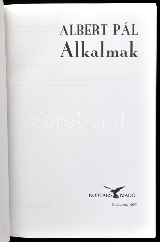 Albert Pál: Alkalmak. A szerző, Sipos Gyula (1935-, író álneve: Albert Pál) író, kritikus, esszéista által Bujdosó Alpár (1935-2021) költő, mérnök, a Magyar Műhely szerkesztője a magyar avantgarde kiemelkedő alakja részére DEDIKÁLT példány. Bp., 1997., Kortárs. Kiadói papírkötés.