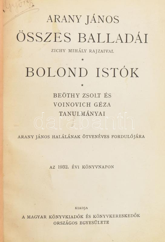 Arany János összes balladái, Zichy Mihály rajzaival. Bolond Istók. Beö... https://www.darabanth.com/en/457-Online-auction/457.0/Books/Books-Other-rarities~1500037/Arany-Janos-osszes-balladai-Zichy-Mihaly-rajzaival-Bolond-Istok-Beothy-Zsolt-es-Voinovich-~II3057449