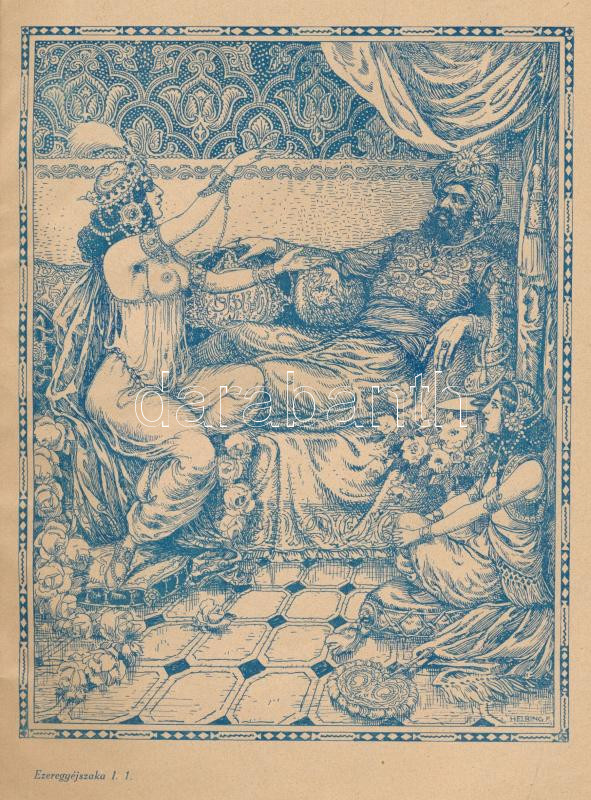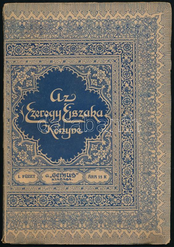 Az ezeregy éjszaka könyve. I. füzet. [Bp.],én,Genius,("Jókai" és Löbl Mór-ny.), 1 t.+48 p. Kiadói papírkötés, a borítón és a gerincen kis szakadással.