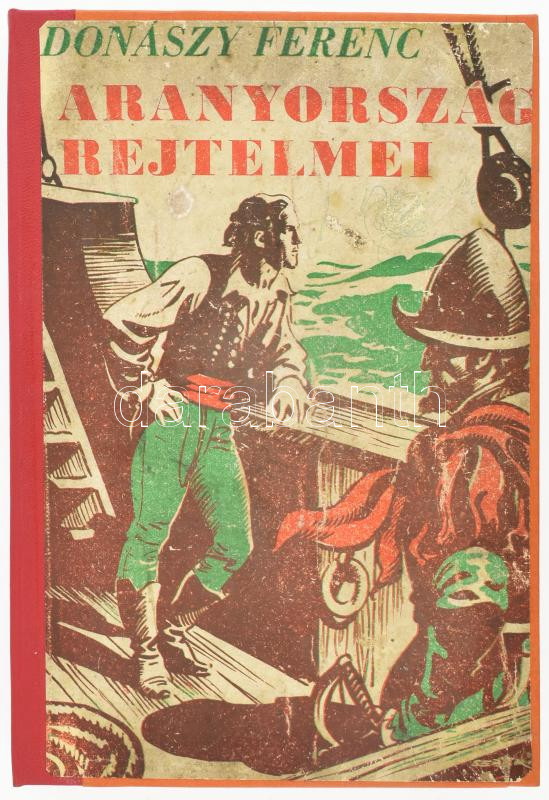 Donászy Ferenc: Aranyország rejtelmei. Átdolgozta ifj. Donászy Ferenc. Sebők Imre rajzaival. Bp., [1942], Hungária. 205+(3) p. Átkötött félvászon-kötésben, helyenként kissé foltos lapokkal, a 49-64. oldalak fénymásolattal pótoltak.