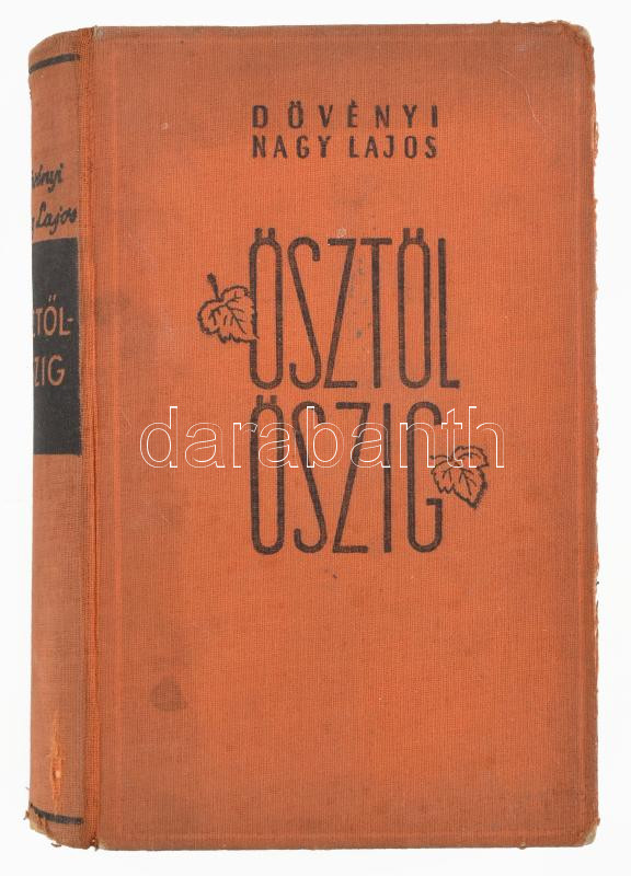 Dövényi Nagy Lajos: Ősztől őszig. Bp., [1940], Stádium, 270 p. Első kiadás. Kiadói egészvászon-kötés, kissé sérült, koszos borítóval, sérült gerinccel, helyenként kissé foltos lapokkal, intézményi bélyegzővel. A kötet szerepel az Ideiglenes Nemzeti Kormány által 1945-ben betiltott könyvek listáján.