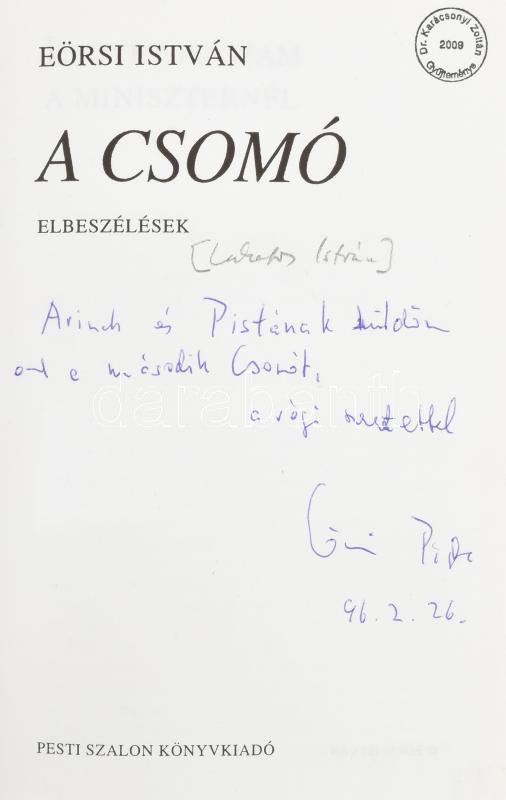 Eörsi István: A csomó. Elbeszélések. A szerző, Eörsi István (1931-2005... https://www.darabanth.com/en/457-Online-auction/457.0/Books/Books-Other-rarities~1500037/Eorsi-Istvan-A-csomo-Elbeszelesek-A-szerzo-Eorsi-Istvan-1931-2005-altal-Lakatos-IstvC3~II3054927
