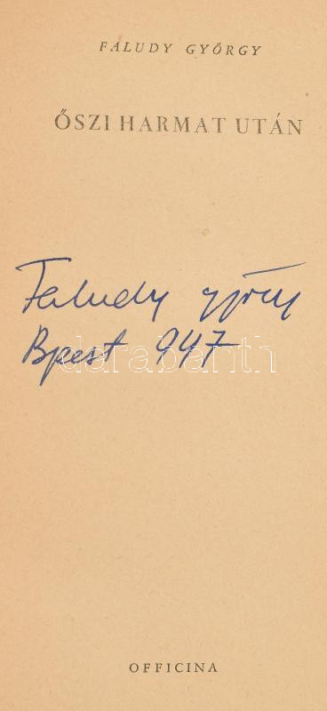Faludy György: Őszi harmat után.A szerző, Faludy György (1910-2006) Ko... https://www.darabanth.com/en/457-Online-auction/457.0/Books/Books-Other-rarities~1500037/Faludy-Gyorgy-Oszi-harmat-utanA-szerzo-Faludy-Gyorgy-1910-2006-Kossuth-dijas-kolto-mu~II3061845