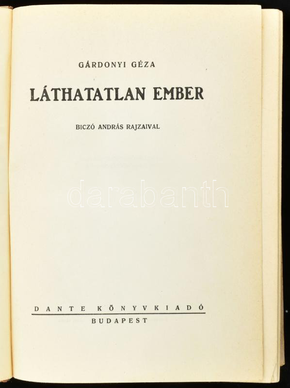 Gárdonyi Géza: A láthatatlan ember. Biczó András rajzaival. Bp., 1932. Dante. 359 p. Illusztrált kiadói félvászon-kötésben. Első illusztrált kiadás.Gerincen minimális kopással