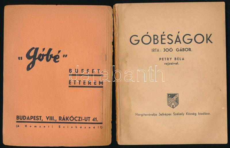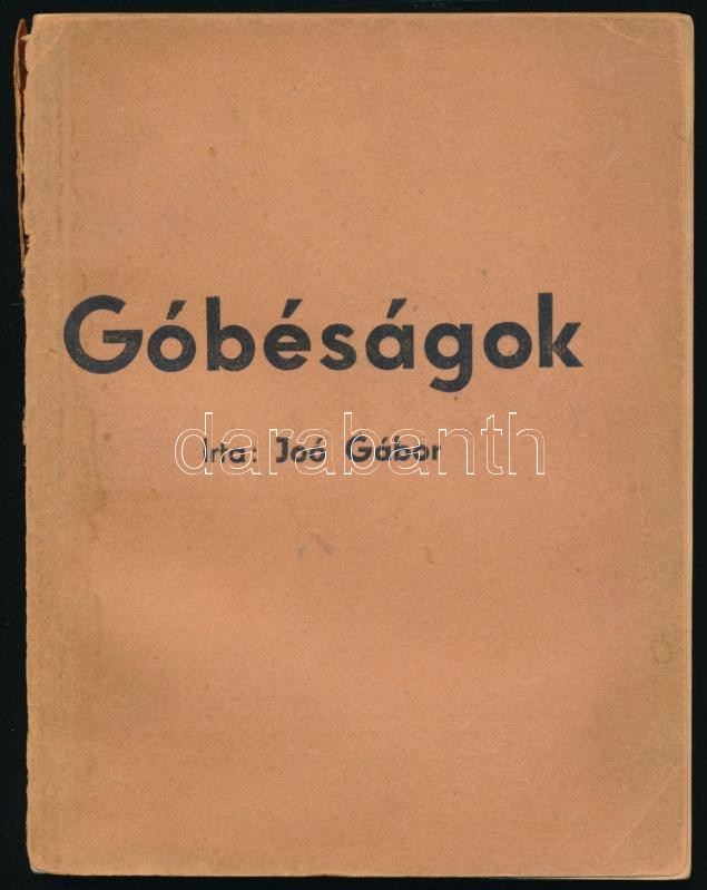 Joó Gábor: Góbéságok. Petry Béla rajzaival. A szerző, Joó Gábor által DEDIKÁLT példány! [Bp.,1938.], Hargitaváralja Jelképes Székely Község, (Turul-ny.), 100+2 p. Egészoldalas fekete-fehér illusztrációkkal. Kiadói papírkötés, szakadt borítóval, az elülső borító leszakadt, foltos. Ritka!