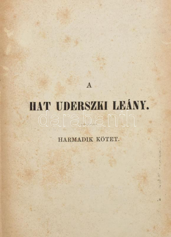 Jósika Miklós: A hat uderszki leány. I-IV. köt. [Két kötetben.] Pest, ... https://www.darabanth.com/en/457-Online-auction/457.0/Books/Books-Other-rarities~1500037/Josika-Miklos-A-hat-uderszki-leany-I-IV-kot-Ket-kotetben-Pest-1869-Heckenast-Gusztav~II3039941