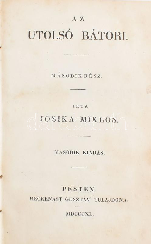 Jósika Miklós: Az utolsó Bátori. II. és III. rész. Jósika MIklós'... https://www.darabanth.com/en/457-Online-auction/457.0/Books/Books-Other-rarities~1500037/Josika-Miklos-Az-utolso-Batori-II-es-III-resz-Josika-MIklos-Regenyei-VII-es-VIII-k~II2815950