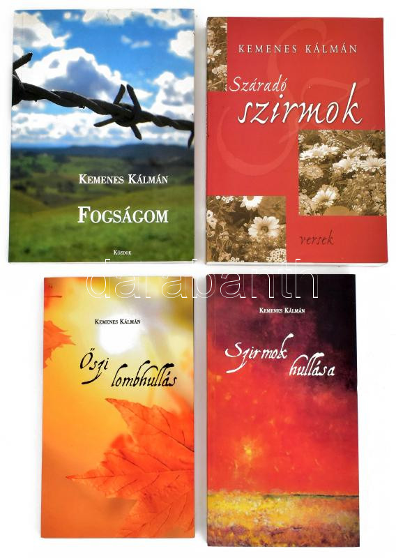 https://www.darabanth.com/en/457-Online-auction/457.0/Books/Books-Other-rarities~1500037/Kemenes-Kalman-4-db-DEDIKALT-konyve-Fogsagom-Szarado-szirmok-Szirmok-hullasa-Oszi-lombh~II2944218