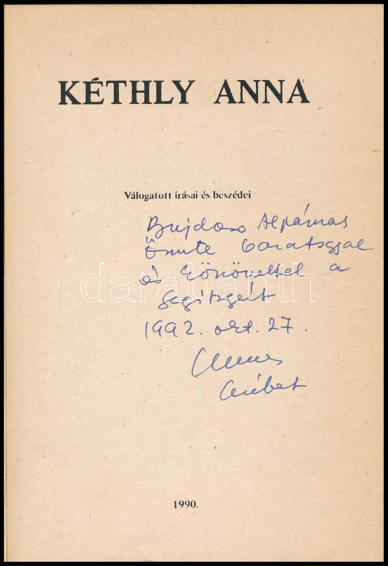 Kéthly Anna válogatott írásai és beszédei. A bevezetőt írta és a dokumentumokat összeállította: Strassenreiter Erzsébet. A szerkesztő, Strassenreiter Erzsébet (1933-) által Bujdosó Alpár (1935-2021) költő, mérnök, a Magyar Műhely szerkesztője a magyar avantgarde kiemelkedő alakja részére DEDIKÁLT példány. [Bp.], 1990, Elektroplaszt. Kiadói papírkötés.