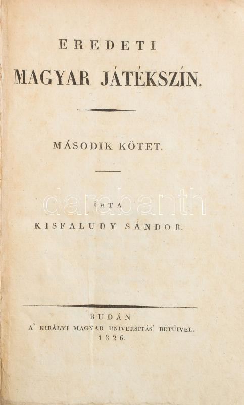 Kisfaludy Sándor: Eredeti magyar játékszín II. kötet. Bp., 1826., Kirá... https://www.darabanth.com/en/457-Online-auction/457.0/Books/Books-Other-rarities~1500037/Kisfaludy-Sandor-Eredeti-magyar-jatekszin-II-kotet-Bp-1826-Kiralyi-Magyar-Univeritas-~II2815769