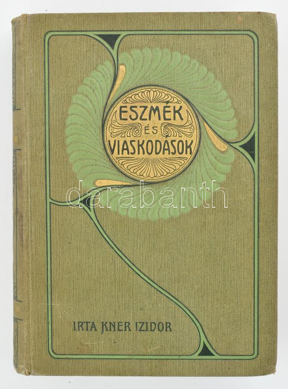 Kner Izidor: Eszmék és viaskodások. Gyoma, 1906., Kner Izidor, 8+408 p. Kiadói szecessziós aranyozott,festett egészvászon-kötés, márványozott lapélekkel, a borÃtón kopásnyomokkal, kissé foltos lapélekkel.