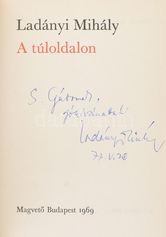 https://www.darabanth.com/en/457-Online-auction/457.0/Books/Books-Other-rarities~1500037/Ladanyi-Mihaly-A-tuloldalon-DEDIKALT-Bp-1969-Magveto-Kiadoi-egeszvaszon-kotes-kiad~II3056491