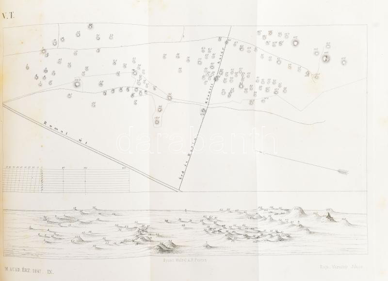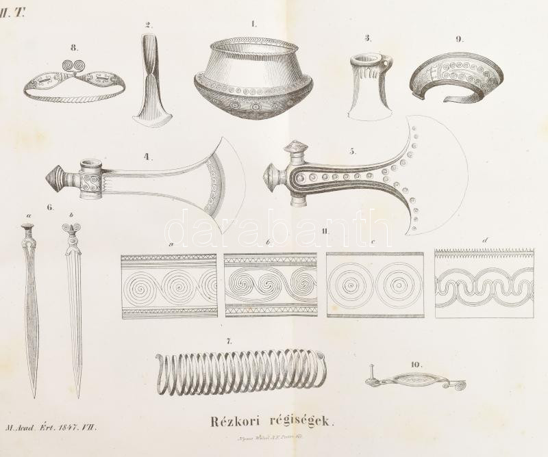 Az Academia' rendeletéből kiadta Toldy Ferencz. (VII. évf. 1-12. szám.) Pest, 1847, Eggenberger J. és Fia. (Beimel ny. és Kozma ny.) VIII. 406 l. 16 t. (kőnyomatú táblák, 8 kihajtható), 1 térkép (rézmetszet). Kiadói kartonált papírkötésben, jó állapotban