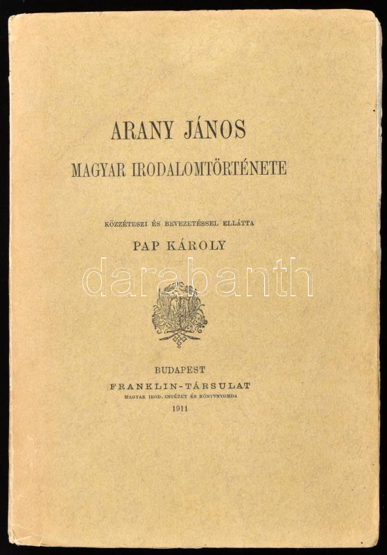 Pál Károly: Arany János magyar irodalomtörténete. Közzéteszi és beveze... https://www.darabanth.com/en/457-Online-auction/457.0/Books/Books-Other-rarities~1500037/Pal-Karoly-Arany-Janos-magyar-irodalomtortenete-Kozzeteszi-es-bevezetessel-ellatta--~II3042252