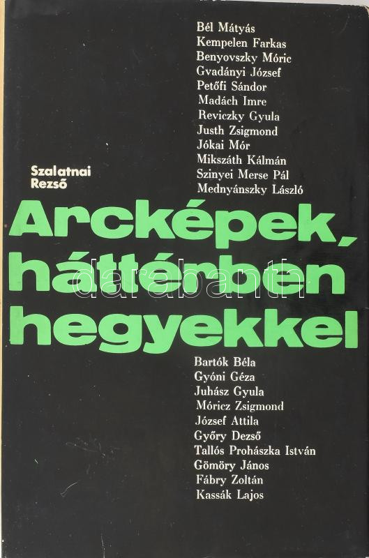 Szalatnai RezsÅ‘: Arcképek, háttérben hegyekkel. Esszék és emlékezések. Bp., 1969, Szépirodalmi Könyvkiadó. Kiadói egészvászon-kötés, kiadói papÃr védÅ‘borÃtóban. Megjelent 3350 példányban.