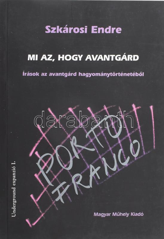 Szkárosi Endre: Mi az, hogy avantgárd. Írások az avantgárd hagyománytö... https://www.darabanth.com/en/457-Online-auction/457.0/Books/Books-Other-rarities~1500037/Szkarosi-Endre-Mi-az-hogy-avantgard-Irasok-az-avantgard-hagyomanytortenetebol-Undergro~II3058953