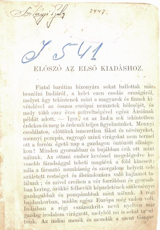 Vámbéry Ármin: Indiai tündérmesék. [Érdekes olvasókönyv az érettebb ifjúság számára. Bp., 1881, Franklin.] Átkötött félvászon-kötés, kopott borítóval, foltos lapokkal, laza fűzéssel, kijáró lapokkal, hiányzó címlappal, javított lapokkal, néhány lapon bejegyzéssel, intézményi bélyegzéssel, névbejegyzéssel, körbevágott (az oldalszámok nagyrészt nem látszanak, de feltehetőleg a címlaphiányt leszámítva teljes), megviselt állapotban.
