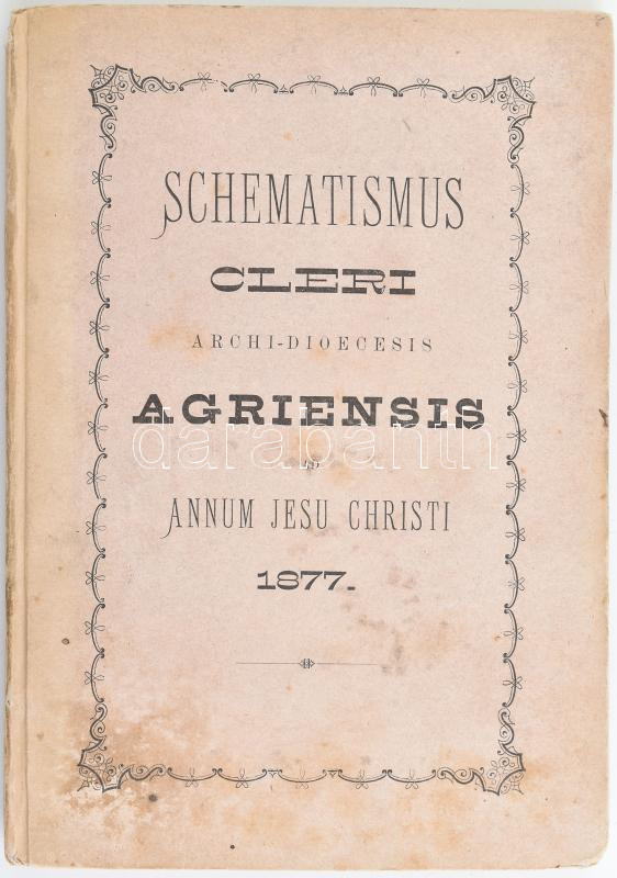 Schematismus Cleri archi-dioecesis Agriensis ad annum Jesu Christi 187... https://www.darabanth.com/en/457-Online-auction/457.0/Books/Books-Religion~1500032/Schematismus-Cleri-archi-dioecesis-Agriensis-ad-annum-Jesu-Christi-1877-Az-Egri-foegyhazmegye-rom~II2797580
