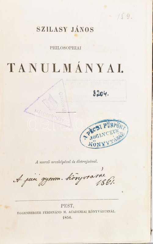https://www.darabanth.com/en/457-Online-auction/457.0/Books/Books-Social-sciences~1500028/Szilasy-Janos-Philosophiai-tanulmanyai-Pest-1856-Eggenberger-Ferdinand-Emich-Gusztav-ny-1~II3054301