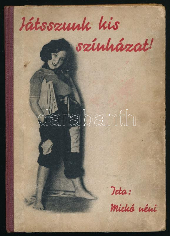 (Csergő Hugóné) Mickó Néni: Játszunk színházat! Apró színdarabok 5-14 éves gyerekek számára. Bp., én., Révai. Kiadói félvászon-kötés, kopott, foltos borítóval, laza fűzéssel, ceruzás bejegyzésekkel, kissé laza fűzéssel, tábla hiánnyal.