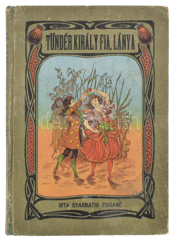 Gyarmathi Zsigáné: Tündér király fia, lánya. A világ vége és egyéb mesék és történetek jó fiuk és lányok részére. Bp., [1910], Tolnai, 143+(1) p. Kiadói illusztrált egészvászon-kötés, kissé kopott, a gerincnél sérült borítóval, helyenként kissé sérült, foltos lapokkal.