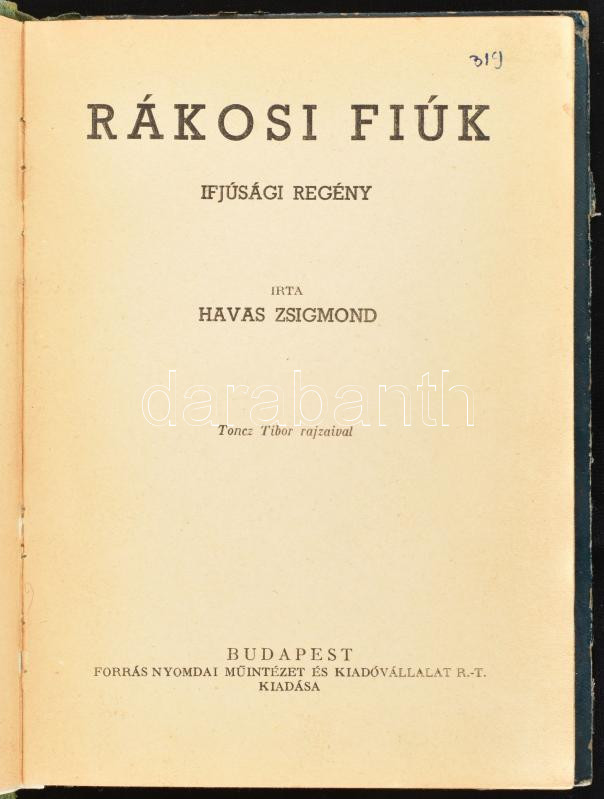 Havas Zsigmond: Rákosi fiúk. Ifjúsági regény. Toncz Tibor rajzaival. B... https://www.darabanth.com/en/457-Online-auction/457.0/Books/Books-Tales~1500035/Havas-Zsigmond-Rakosi-fiuk-Ifjusagi-regeny-Toncz-Tibor-rajzaival-Bp-en-Forras-191-p~II3009574