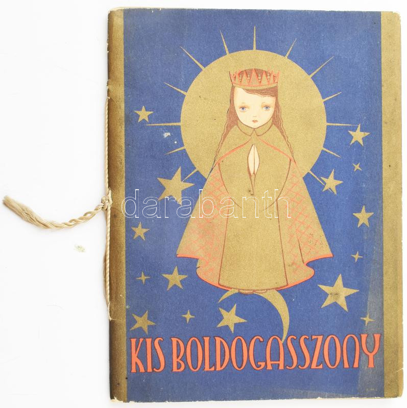 Description: Kis Boldogasszony képeskönyve. A magyar népénekek alapján összeáll.: Bali Mária Ildefonsa és Kákonyi Mária Constantina. Bp., [1944], Korda Rt. (Klösz Gy. és Fia). Egészoldalas, színes illusztrációkkal. Kiadói zsinórfűzéses papírkötés, minimálisan sérült borítóval.