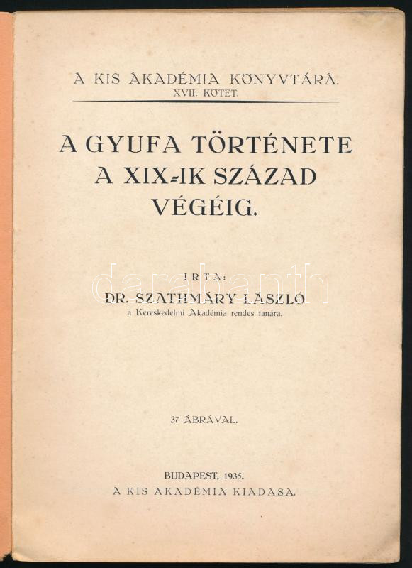 Dr. Szathmáry László: A gyufa története a XIX-ik század végéig. A Kis ... https://www.darabanth.com/en/457-Online-auction/457.0/Books/Books-Technics~1500029/Dr-Szathmary-Laszlo-A-gyufa-tortenete-a-XIX-ik-szazad-vegeig-A-Kis-Akademia-Konyvtara-~II3004570