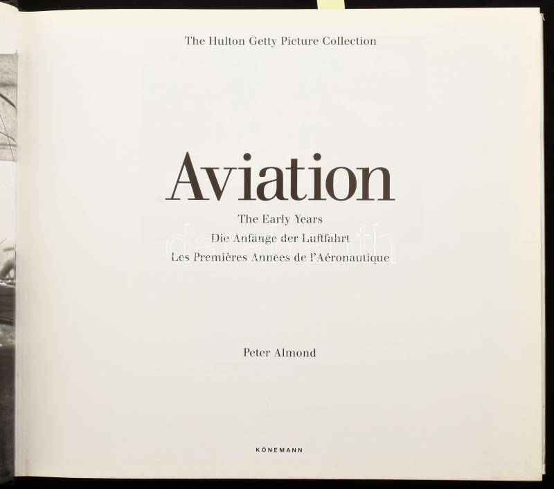 Description: Peter Almond: Aviation. The Early Years: The Hutton Getty Picture Collection. Köln, 1997, Könemann. 349+3 p. Angol, német és francia nyelven. Fekete-fehér képekkel gazdagon illusztrált. Kiadói egészvászon kötés, kiadói papír védőborítóval.