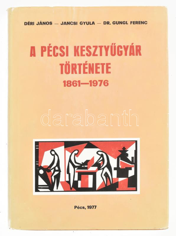 Déri János, Dr. Gungl Ferenc, Jancsi Gyula: A Pécsi Kesztyűgyár története 1861-1976. Pécs, 1977, Pécsi Kesztyűgyár. Kiadói egészvászon-kötés, kiadói papír védőborítón apró szakadásokkal, kötéstáblák belsejének valamint előzéklap és hátsó szennylap tetején kisebb ázásnyommal.