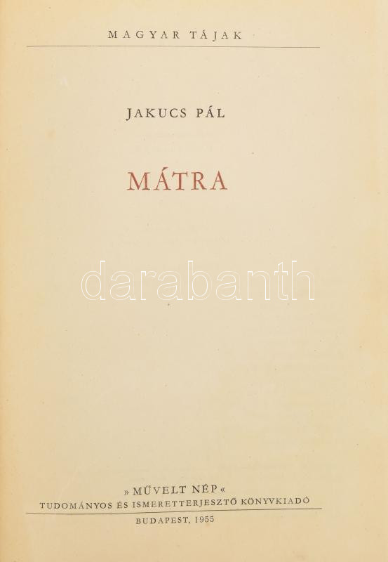 Jakucs Pál: Mátra. Csergezán Pál illusztrációival. Magyar Tájak. Bp., 1955, Művelt Nép. Fekete-fehér egészoldalas fotókkal. Kihajtható térkép-melléklettel, 24x37 cm. Kiadói félvászon-kötés, kopott, foltos borítóval.