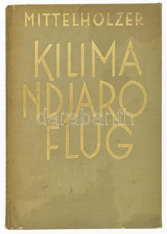 Mittelholzer, Walter: Kilimandjaro Flug. Zürich-Leipzig, 1930, Orell Füssli. Második kiadás. Egészoldalas, fekete-fehér képekkel illusztrálva. Német nyelven. Kiadói aranyozott egészvászon-kötés, kissé viseltes, foltos borítóval, belül nagyrészt jó állapotban.