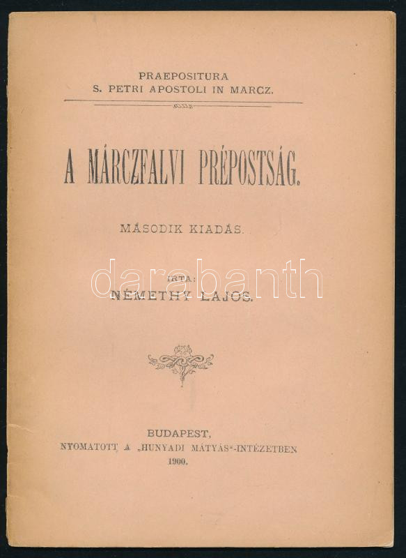 Némethy Lajos: A márczfalvi prépostság. Praepositura S. Petri Apostoli... https://www.darabanth.com/en/457-Online-auction/457.0/Books/Books-Travelling-Local-History~1500017/Nemethy-Lajos-A-marczfalvi-prepostsag-Praepositura-S-Petri-Apostoli-In-Marcz-Bp-1900-Hu~II2869874