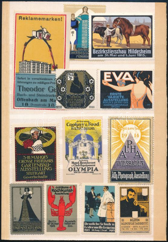 12 db főleg német levélzáró reklámokkal, kiállításokkal