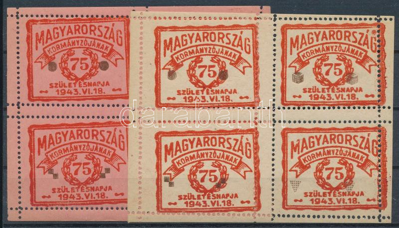 1943 Magyarország kormányzójának 75. születésnapjára levélzáró négyestömb / label