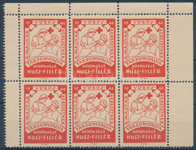 1944 Taksonyfalva közönsége a Magyar Vöröskeresztnek 20f adománybélyegek, 6-os kisíven / Hungarian charity stamps in mini sheet of 6