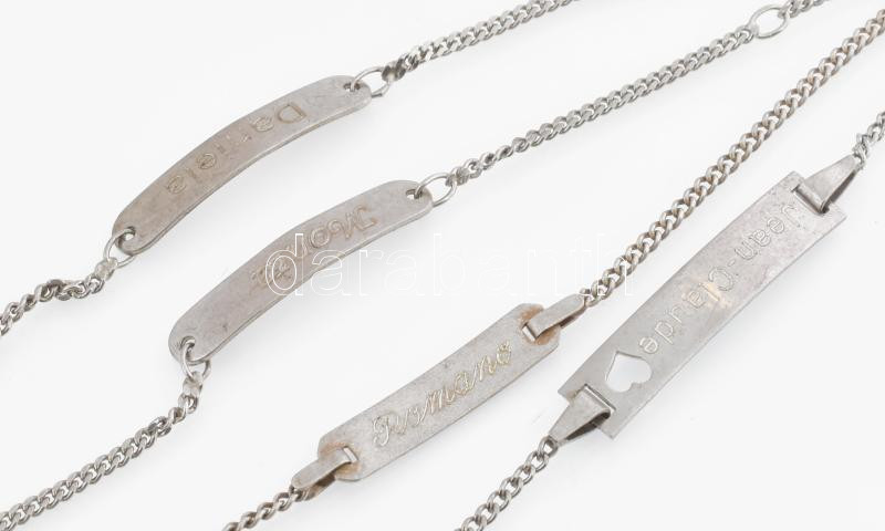 4 db Ezüst (Ag) karkötő nevesített táblákkal jelzett 7,8 g