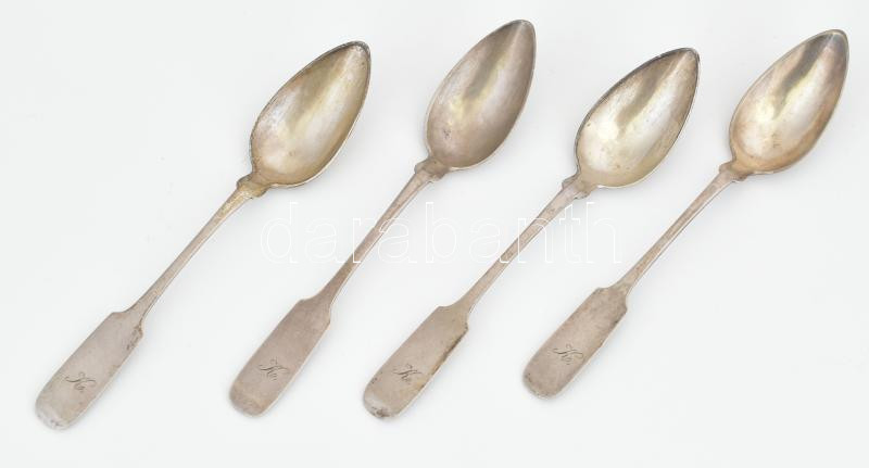 4 db antik ezüst (Ag) teás / limonádés kanál, Boroszlói jelzéssel, mes...