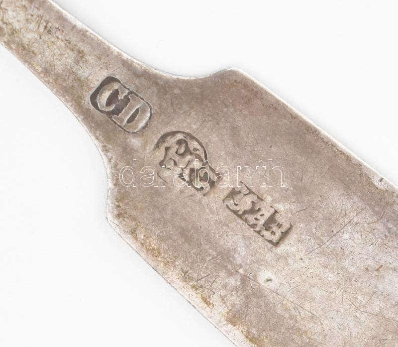 4 db antik ezüst (Ag) teás / limonádés kanál, Boroszlói jelzéssel, mesterjeggyel 48 g 17 cm