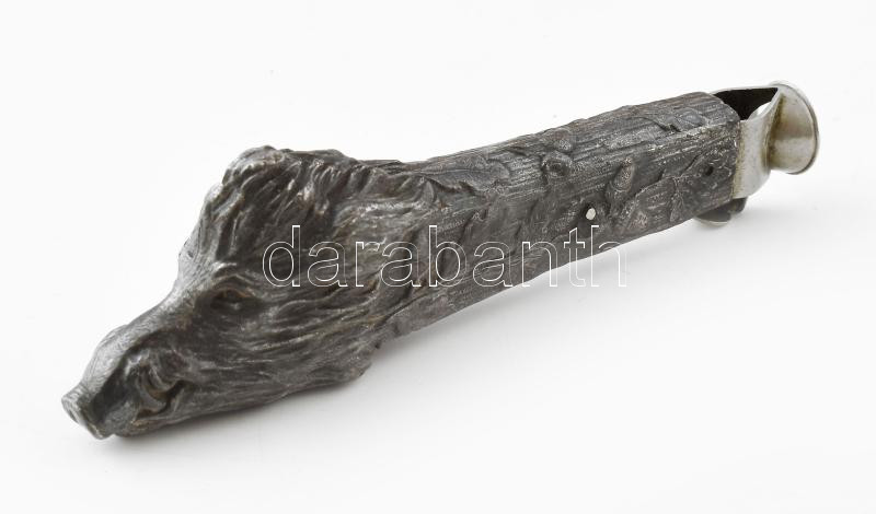 Description: Antik szivarvágó vadász témájú ezüst (Ag) vaddisznót ábrázoló plasztikus borítással 14 cm /