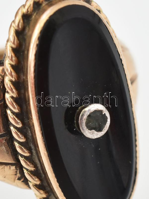 Arany (Au) antik női gyűrű, ónix berakással, 14k, jelzés nélkül, brutt...