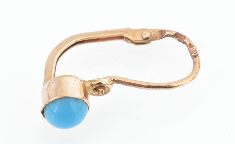 Arany (Au) fülbevaló, 1 db, türkiz berakással, jelzéssel, bruttó: 0,4 ...