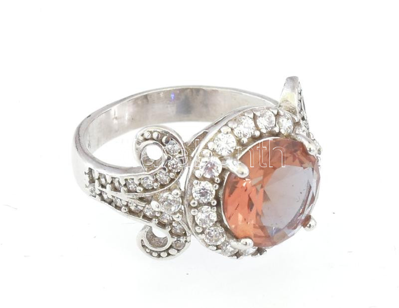 Ezüst(Ag) kövekkel gazdagon kirakott gyűrű, jelzett, méret: 56, bruttó: 5,1 g