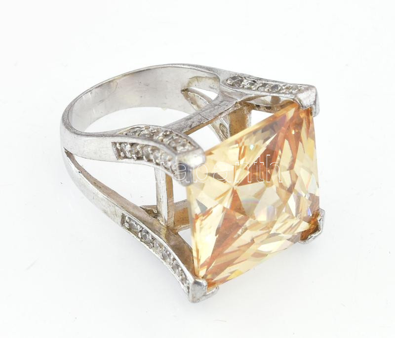 Ezüst(Ag) köves gyűrű, jelzett, méret: 54, bruttó: 18 g
