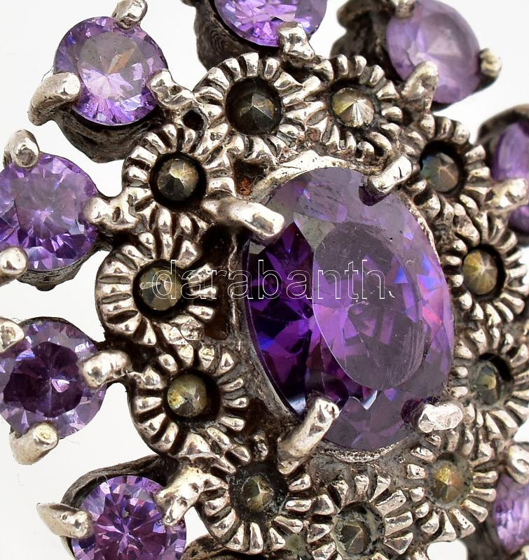 Ezüst(Ag) nyaklánc lila köves medállal, jelzett, h: 64 cm, bruttó: 14,...