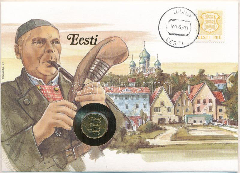 Description: Észtország 1992. 50s Cu-Al-Ni felbélyegzett borítékban, bélyegzéssel, német nyelvű tájékoztatóval T:UNC