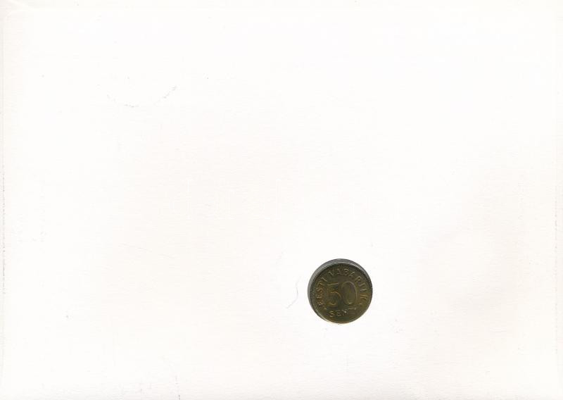 Estonia 1992. 50 Senti Cu-Al-Ni in envelope with stamp, cancellation and a prospectus in german C:UNC
